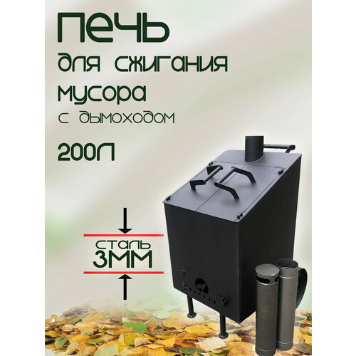 Мини Печь для сжигания мусора с дымоходом 75л, толщина 1,5мм