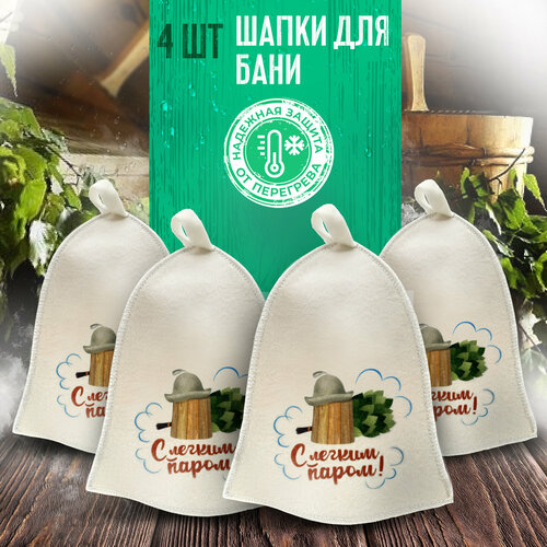 Шапка для бани принт "С легким паром" TM ”Бацькина баня 4 шт