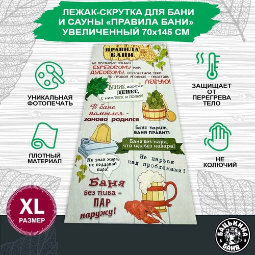 Коврик для бани и сауны Бацькина баня увеличенного размера 145х50 см скрутка лежак банный
