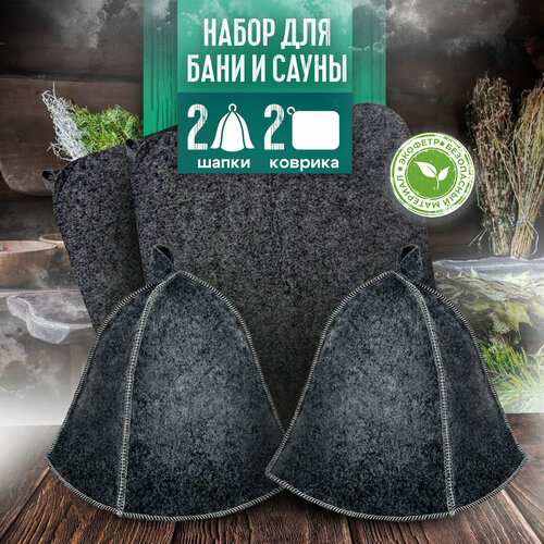 Набор для бани и сауны шапка и коврик по 2 шт все для бани