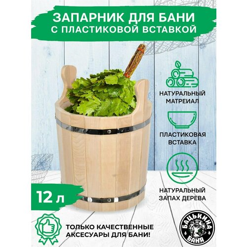 Запарник с пластиковой вставкой для бани для веника 12 л ведро в сауну.