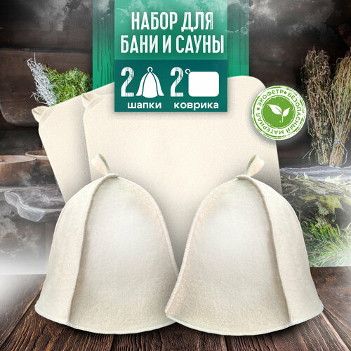 Набор для бани и сауны шапка и коврик по 2 шт все для бани