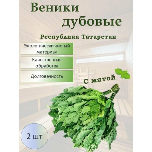 Банный веник для бани, Дубовый с мятой, 30смх55см, 2 шт