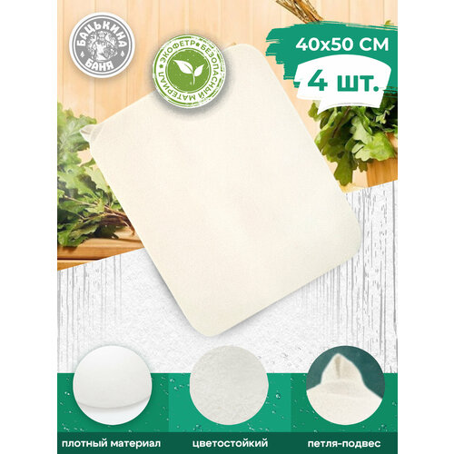 Коврик сидушка для бани и сауны 40х50 см, мягкая подстилка. Набор для бани 6 шт бежевый, белый
