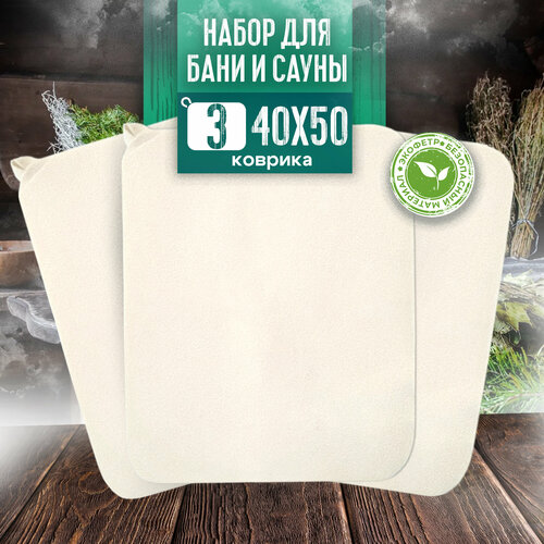 Коврик сидушка для бани и сауны 40х50 см, мягкая подстилка. Набор для бани 3 шт