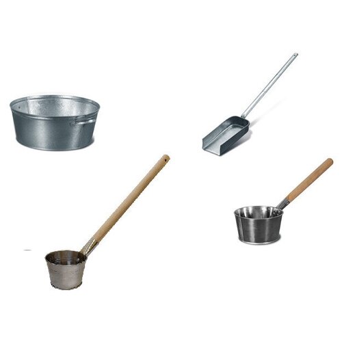 Ковши выполнены из оцинкованной стали и удобен в использовании. Длинная деревянная ручка не даст вам обжечься об металлическую часть изделия.