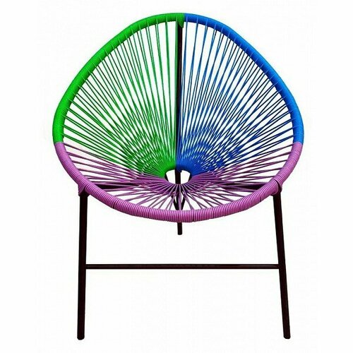 Кресло к набору Монте-Карло арт. MK-MT005-2024 (каркас черный, ротанг жемчуг, ткань полоска) (В)