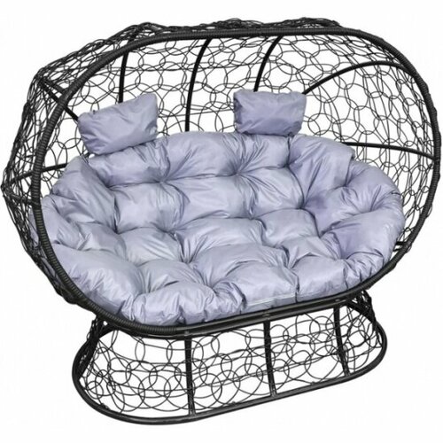 Кресло садовое M-Group папасан пружинка мини ротанг чёрное, серая подушка