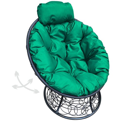 Кресло садовое M-Group папасан пружинка мини ротанг чёрное, зелёная подушка