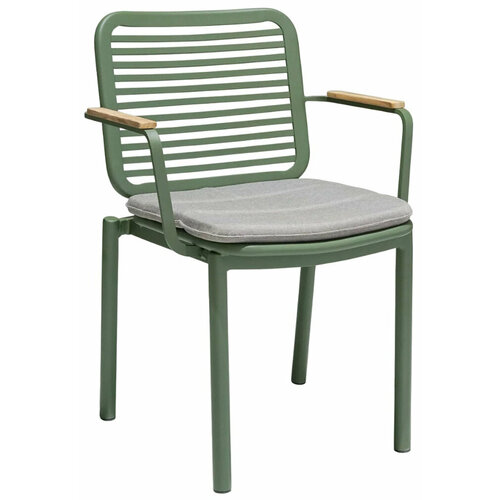 Стул металлический садовый с подлокотниками и подушкой Tagliamento Armona, цвет зеленый, светло-серый