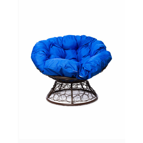 Кресло M-group папасан с ротангом коричневое синяя подушка