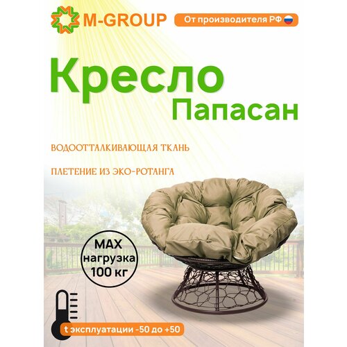 Кресло M-group папасан с ротангом коричневое бежевая подушка