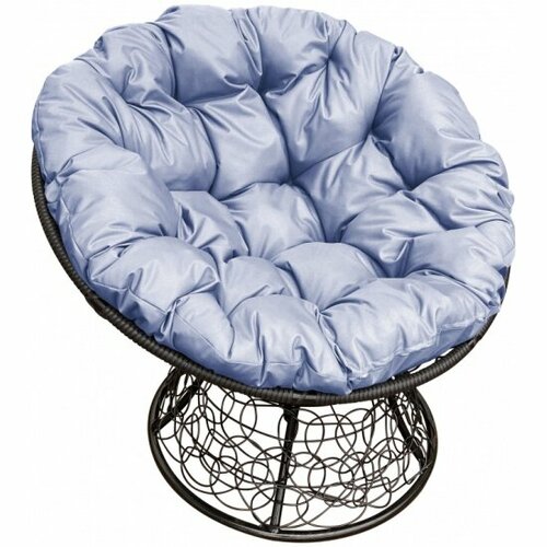 Кресло садовое M-Group папасан пружинка мини ротанг коричневое, голубая подушка