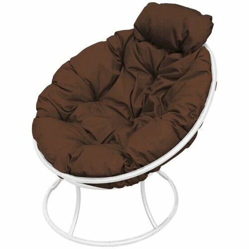 Садовое кресло M-group Папасан мини без ротанга белое + коричневая подушка