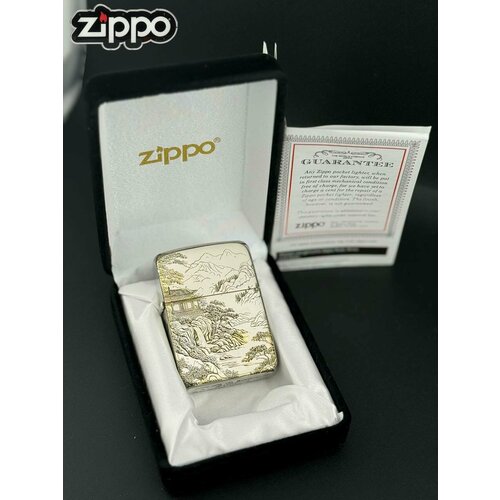 Бензиновая Зажигалка Zippo Replica 1941 «Golden Landscape» — Золотая гравюра с восточным пейзажем