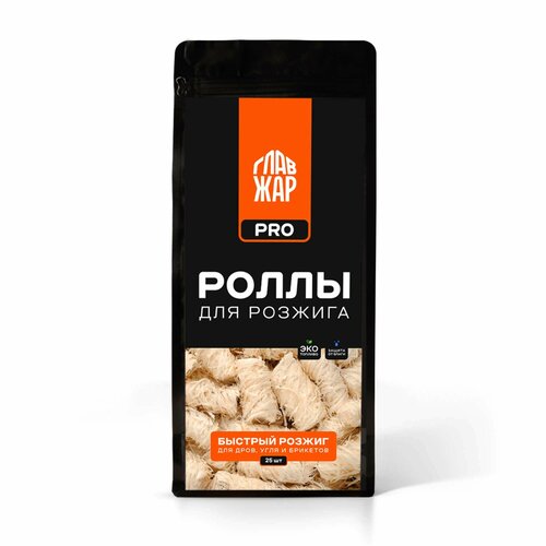 Роллы "ГлавЖар" для быстрого и комфортного розжига угля, брикетов и дров, 25 штук