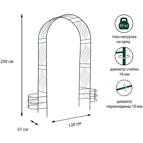 Арка садовая, с клумбами, 250 × 120 × 51 см, разборная, металл, зелёная