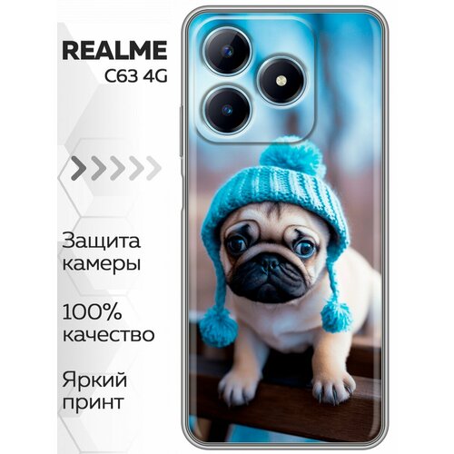 Чехол для Realme C63, Note 60, 60X Щенок мопса в шарке (Реалми С63, Нот 60, Ноут 60х)