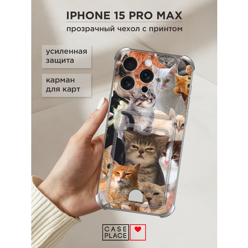 Чехол на Apple iPhone 15 Pro Max (Айфон 15 Про Макс) с картой и принтом Мемные коты