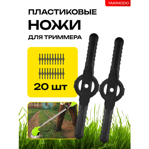 Пластиковые ножи для триммера садового набор 20шт, универсальная насадка для газонокосилки аккумуляторной для травы, лезвие бензокосилки