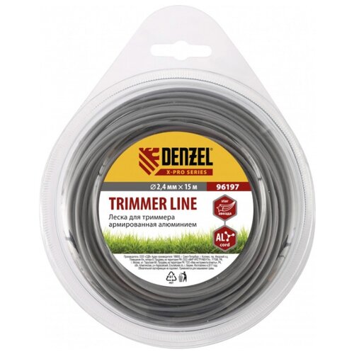 Леска для триммера армированная алюминием, X-Pro, звезда, 2, 4мм х 15м, блистер Denzel