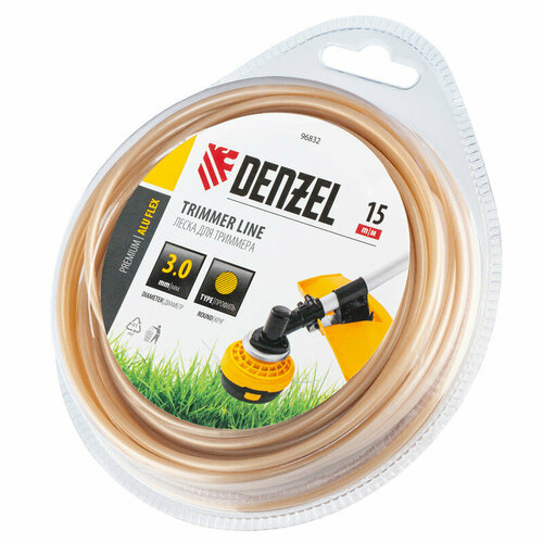 Леска для триммера двухкомпонентная Denzel витая квадратная 3, 0мм х 12м, блистер SkyCutter 96842