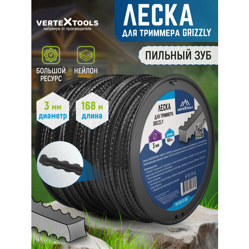Леска для триммера 3 мм 168 метров VertexTools пильный зуб GRIZZLY бобина