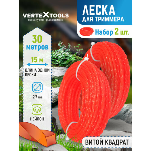 Леска для триммера VertexTools 2,7 мм 30 метров витой квадрат