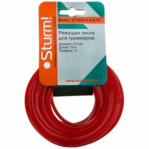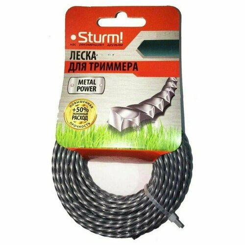 Леска для триммера Sturm, крученый квадрат, армированная, 2мм х 15м, 1 шт.