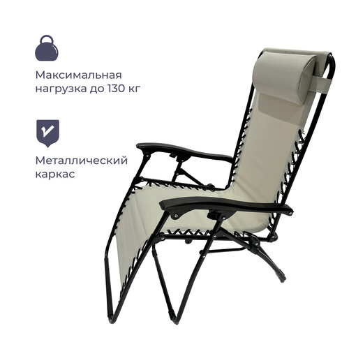 Кресло-шезлонг складное Homsly, регулировка наклона, съемный подголовник, макс. нагрузка 130 кг, цвет платина, LLC 100P