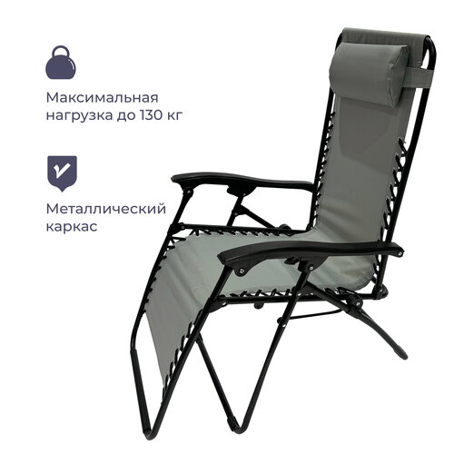 Кресло-шезлонг складное Homsly, регулировка наклона, съемный подголовник, макс. нагрузка 120 кг, серый, LLC 100G