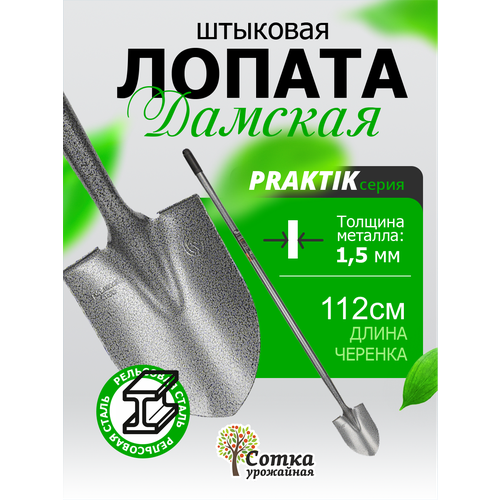 Лопата штыковая с черенком рельсовая сталь ЛКО дамская `Урожайная сотка Практик` садовая 150 см S518-13L