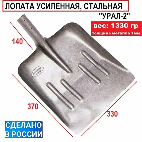 Лопата стальная " УРАЛ-2" для уборки снега снеговая из рельсовой стали с ребрами жесткости