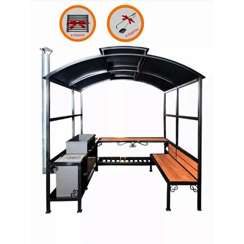 Мангальная беседка "Вайро" с крышей, с жаровней и печью, с лавочкой