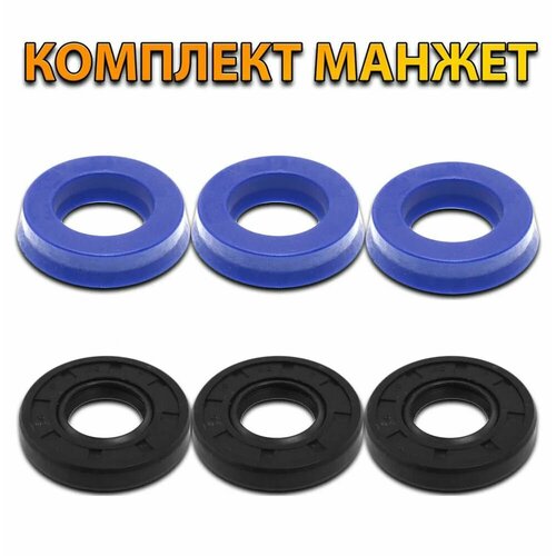 Манжеты для моек высокого давления 6ШТ (водяные 12X18X6 3ШТ и масляные 12X20X5 3ШТ) ремкомплект, уплотнения, запчасти, сальники для HUTER РЕСАНТА STERWINS MAKITA и др.