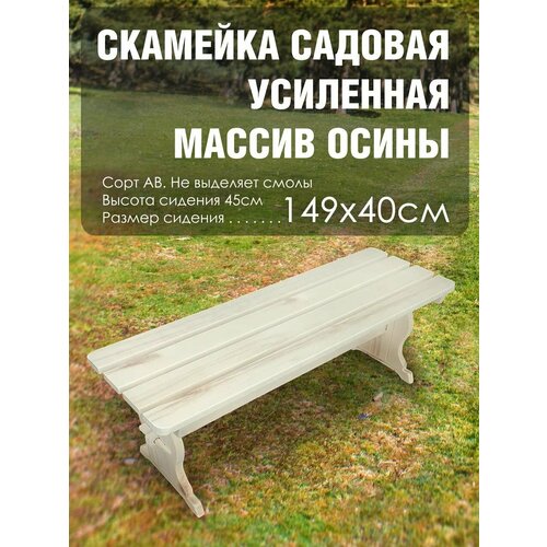 Скамья садовая деревянная усиленная разборная без спинки массив осины сорт А 1,5 метра для бани, дачи, сада