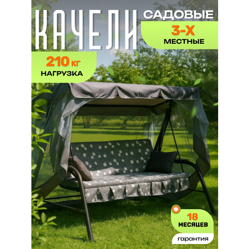 Качели садовые подвесные 3-х местные с москитной сеткой до 250 кг, Green Days