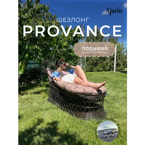 Шезлонг для дачи из композита "Provance" венге с бежевой подушкой, для сада, Ajurio