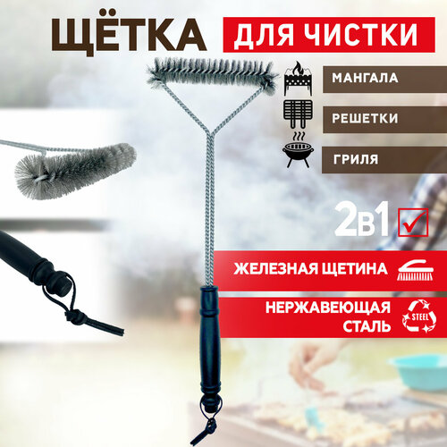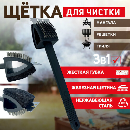 ABS, пластикУниверсальная металлическая щетка оснащена жесткими щетинами, которые эффективно удаляют нагар, жир и другие загрязнения с поверхности гриля, мангала или посуды. Плюс, она имеет жесткую ручку для удобства использования и скребок, за счет чего идеально подходит для чистки решетки барбекю или шашлыка после использования.