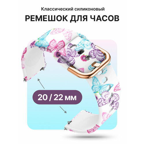Универсальный силиконовый ремешок для часов 20 мм, SILICON-3355-BUTTERFLY20