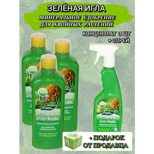 Весеннее минеральное удобрение "Зеленая игла", от побурения хвои. Набор Спрей 500 мл 1 шт + концентрат 500 мл 3 шт