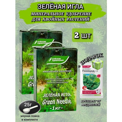 Зеленая игла весеннее удобрение для хвойных растений от побурения хвои, 1 кг. Набор 2 шт