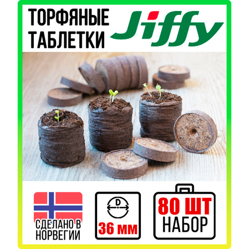 Торфяные таблетки для рассады Jiffy 36 мм, 80 штук в упаковке