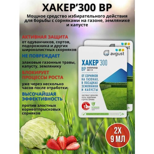 Препарат от сорняков на газоне гербицид Хакер 9 мл, 2 шт