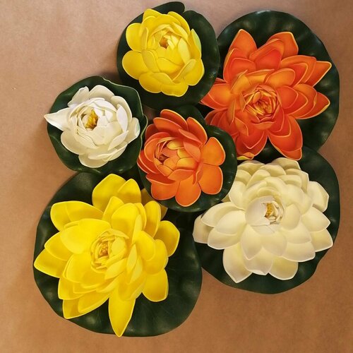 Фигурка садовая для пруда водоплавающая, лилия, набор 6 предметов