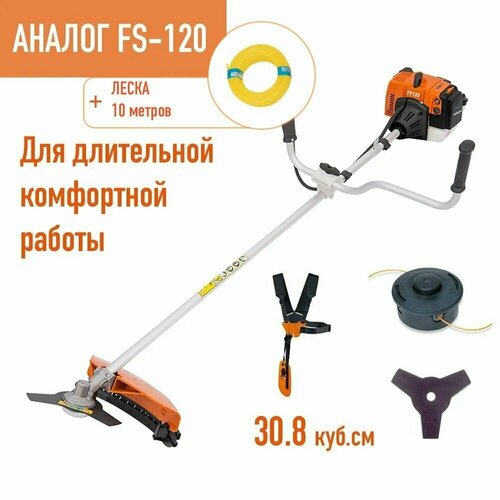 Триммер бензиновый Holzfforma FF120 (аналог FS120, нож 3Т, шпуля AutoCut 25-2 + Леска 10м)