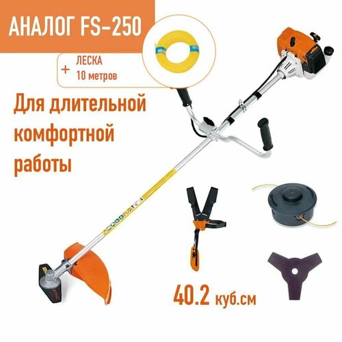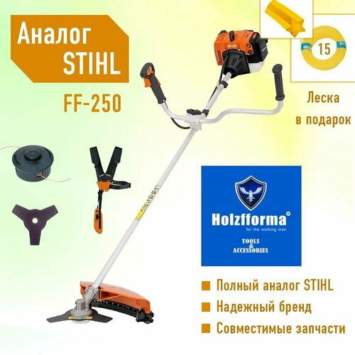 Садовый триммер бензиновый Holzfforma FF250 (аналог FS 250, нож 3Т, шпуля AutoCut 25-2 + леска 15м звезда)