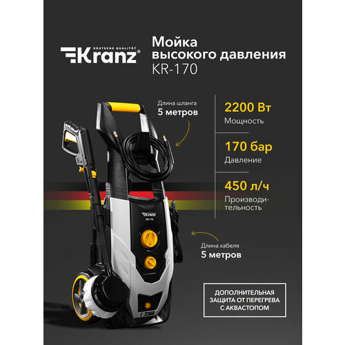 Мойка высокого давления KR-170, 2200Вт, 450л/ч 170 бар, KRANZ