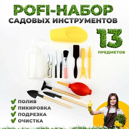 Набор садовых инструментов для ухода за комнатными растениями и рассадой, 13 предметов желтого цвета