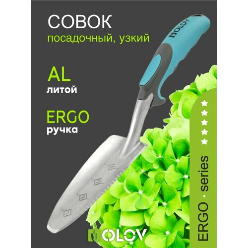 Совок садовый металлический посадочный узкий алюминиевый с эргономичной ручкой `OLOV Эрго`